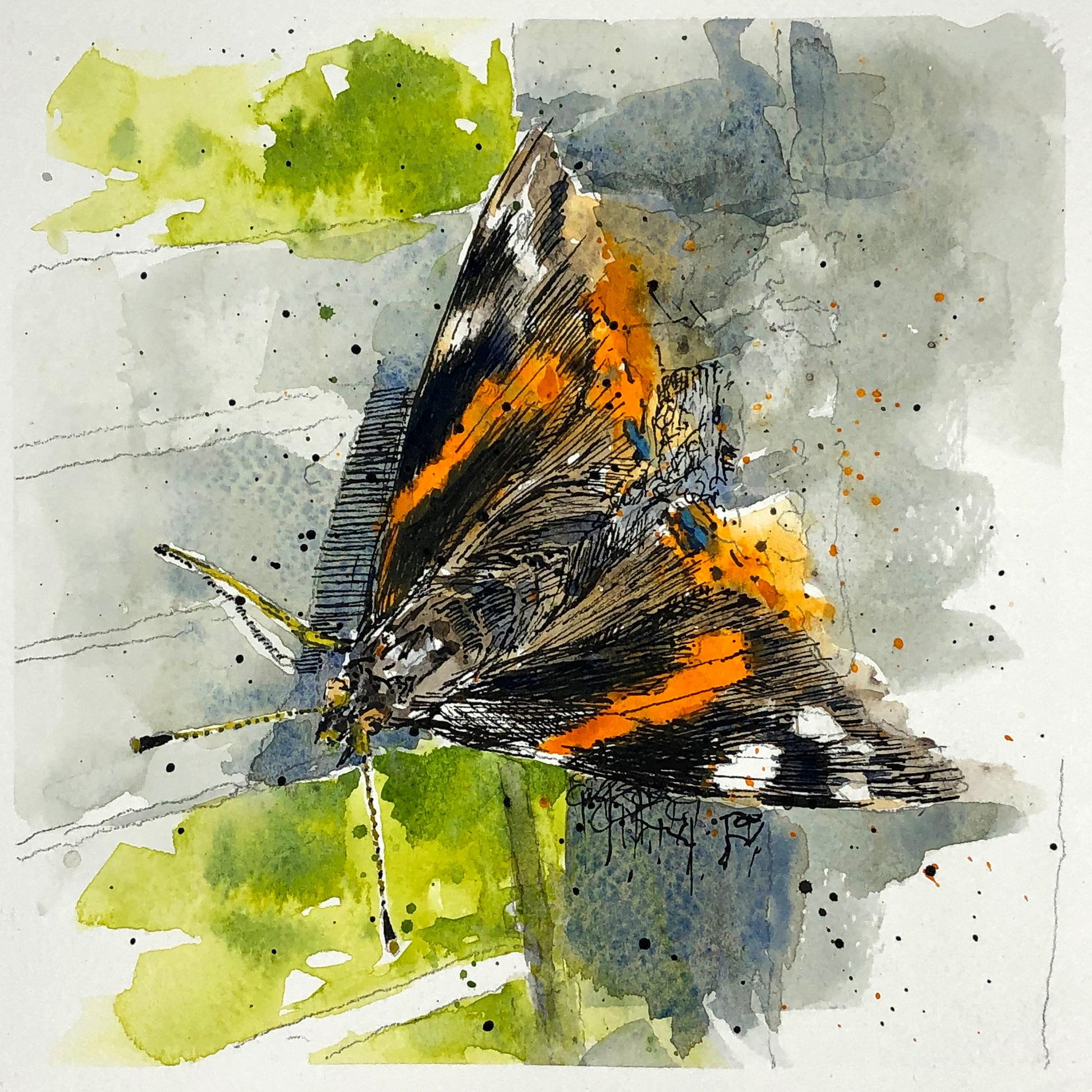 As the sun gains in strength, the butterflies become more and more prevalent with multitudes of Cabbage Whites, the occasional Peacock Blue and amongst them was this fabulous Red Admiral, sunning itself on the galvanised metal of one of the stile gates.