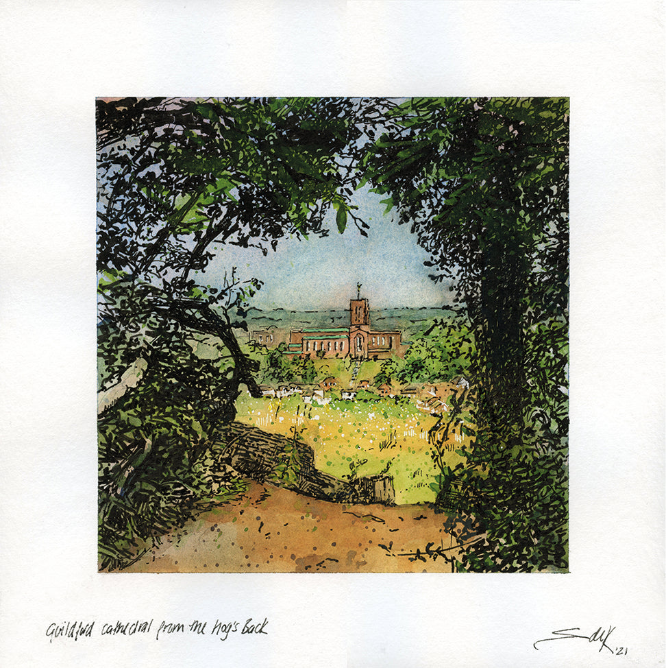 Featuring; 'Onslow Village book swap', 'Litchfield Way, 'Summer, Onslow Village arboretum' and 'Guildford cathedral and Onslow Village from the Hogs Back', these cards are printed on a heavyweight card and are supplied with envelopes so that you can use them to sent a message to friends or family, or keep them yourself to brighten up a shelf!