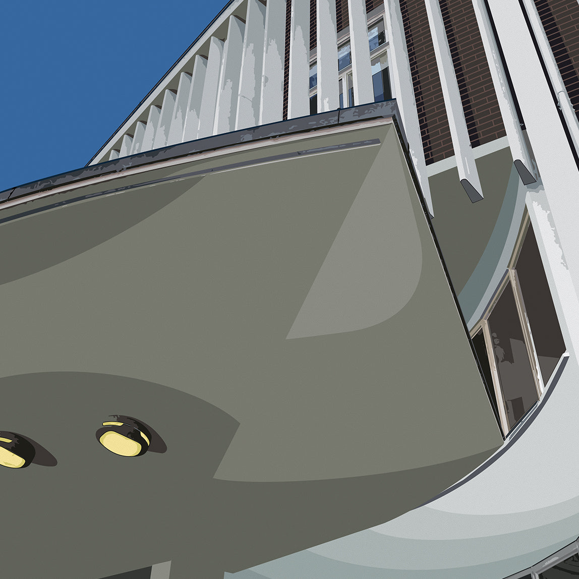 My illustration represents a view that highlights the bold and clean lines of the original design which are still striking more than 50 years after its opening.